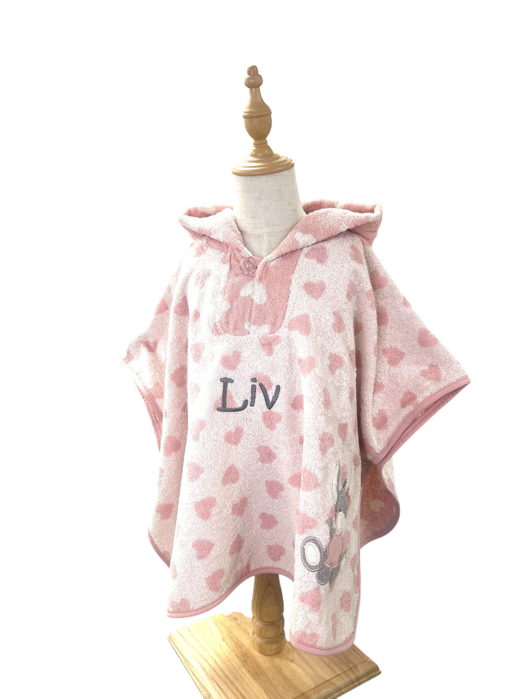 Mit seiner süßen Esel-Applikation und verspielten Allover-Herzchen wird er schnell zum Lieblingsstück im Badezimmer oder Schwimmbad.