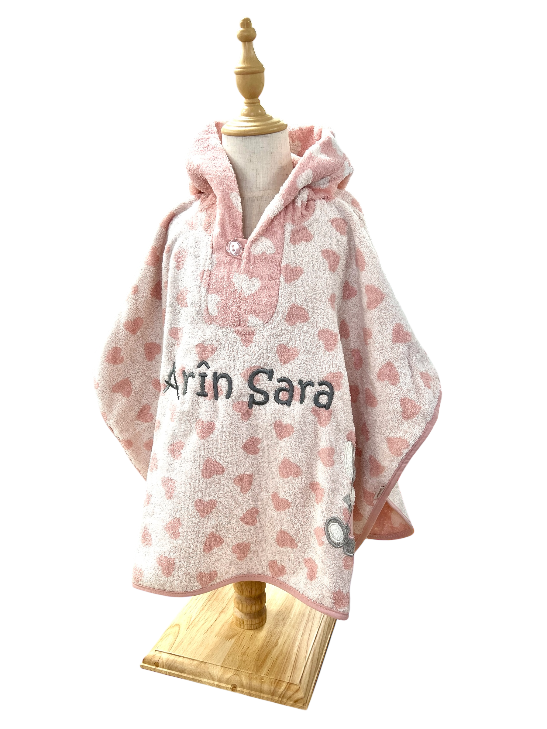 Wir besticken den Badeponcho mit Ihrem Wunschnamen oder Wunschspruch.