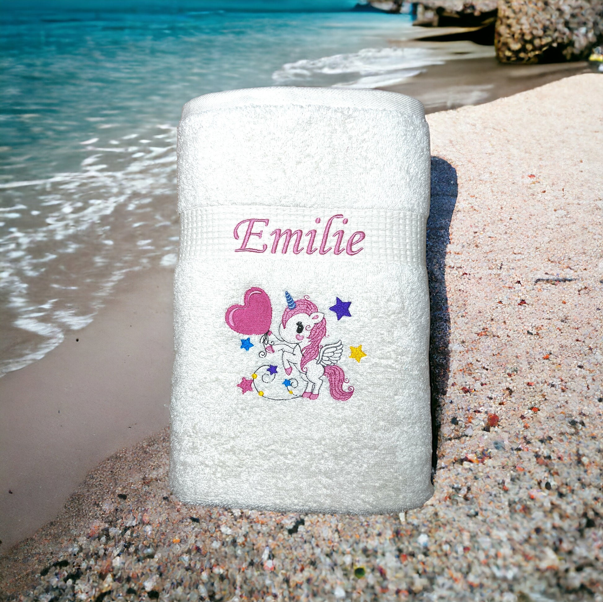 Handtuch mit Einhorn und Name bestickt, verschiedene Größen und viele Farben