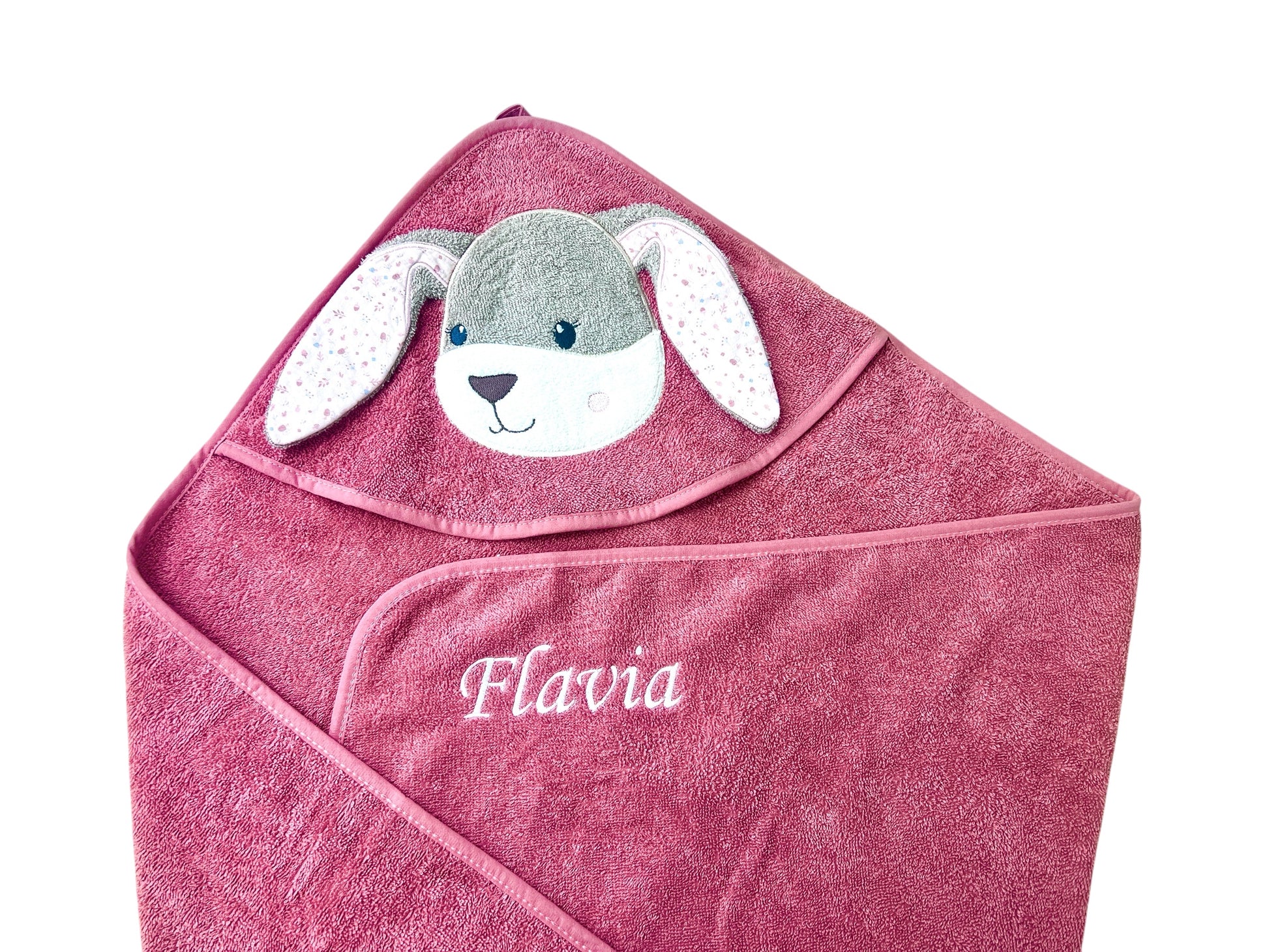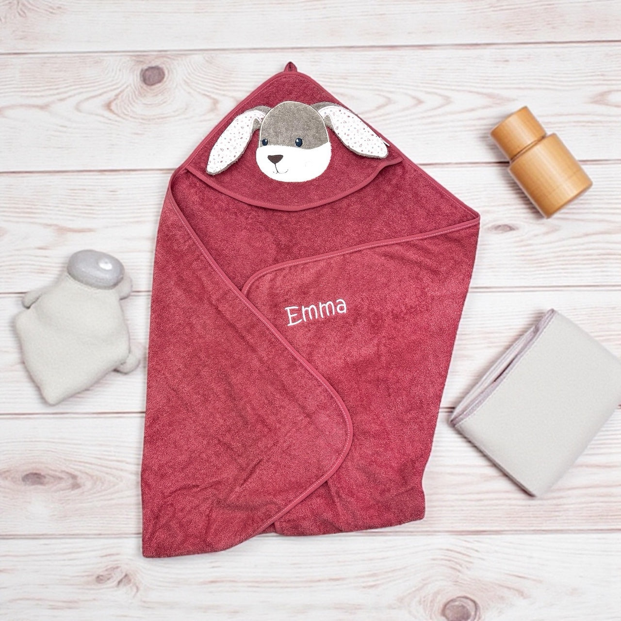 Das Kapuzenbadetuch Hase Hanni ist der perfekte Begleiter für gemütliche Momente nach dem Baden.
