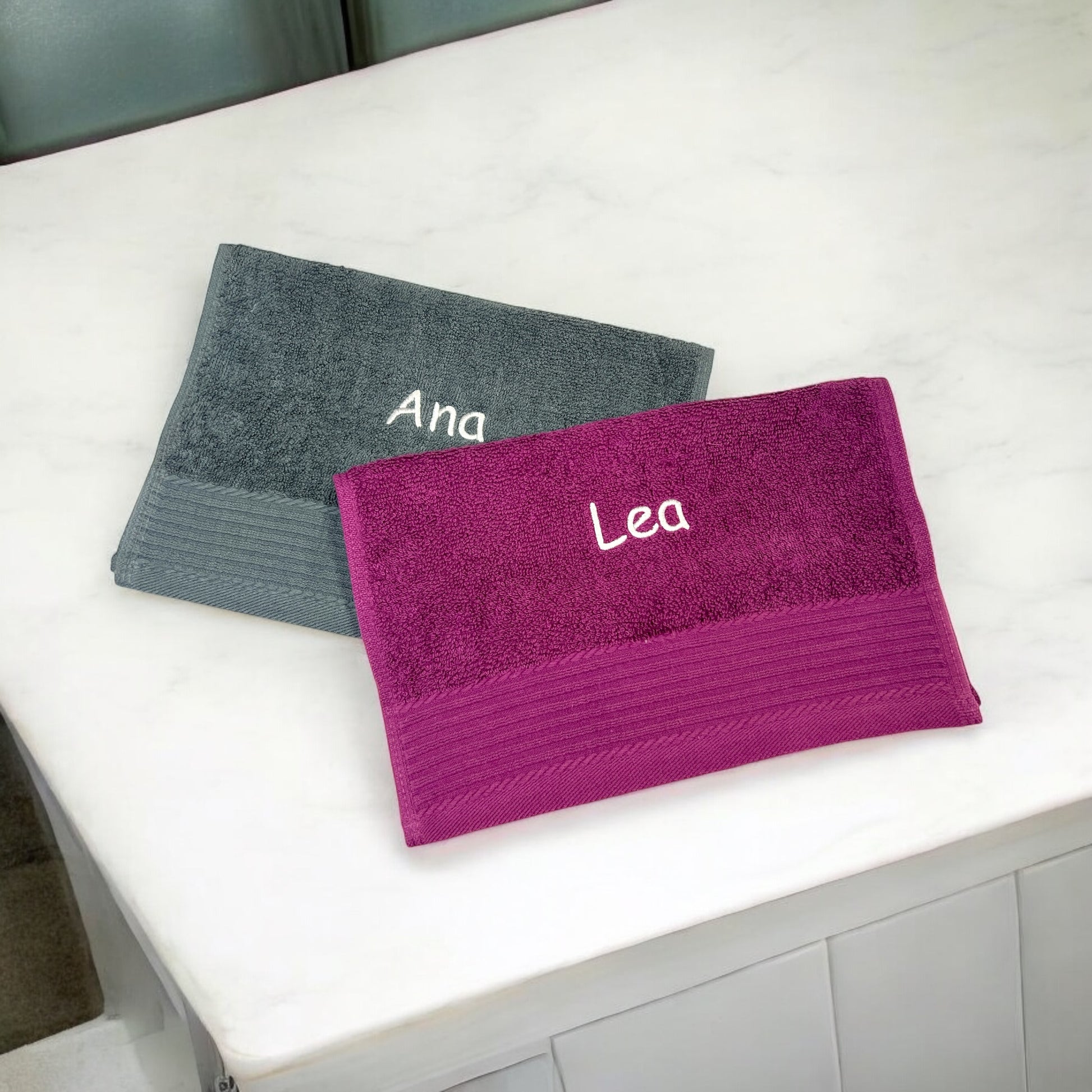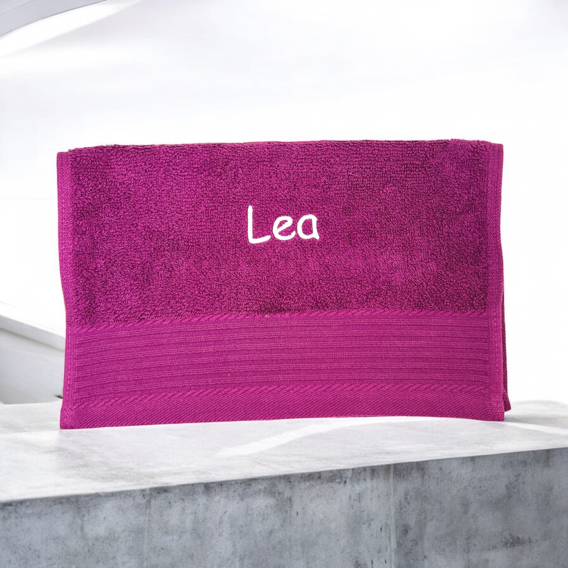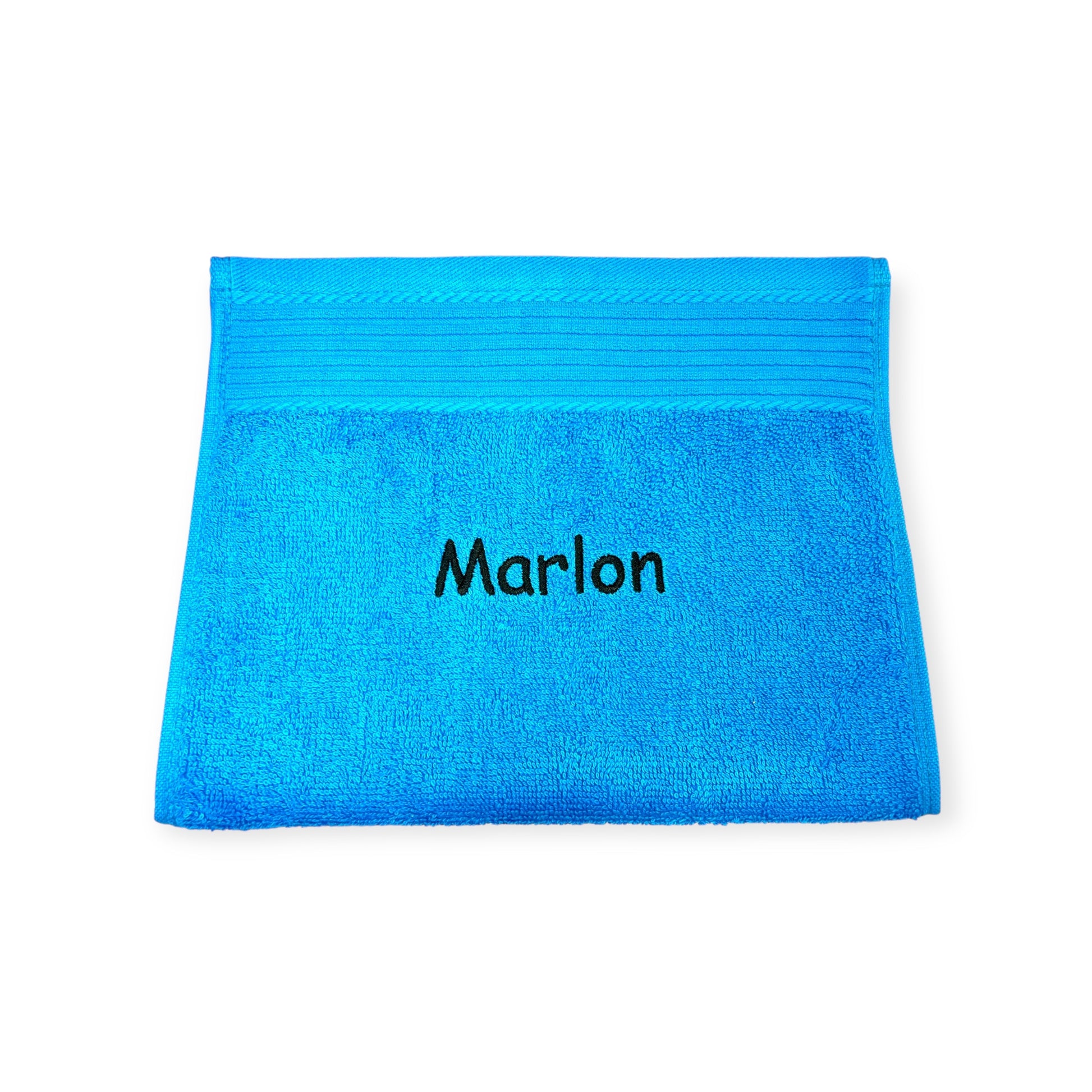 Ohne diese Angaben sticken wir es in der Schriftart "Kirsten" und in einer Farbe passend zum Handtuch.