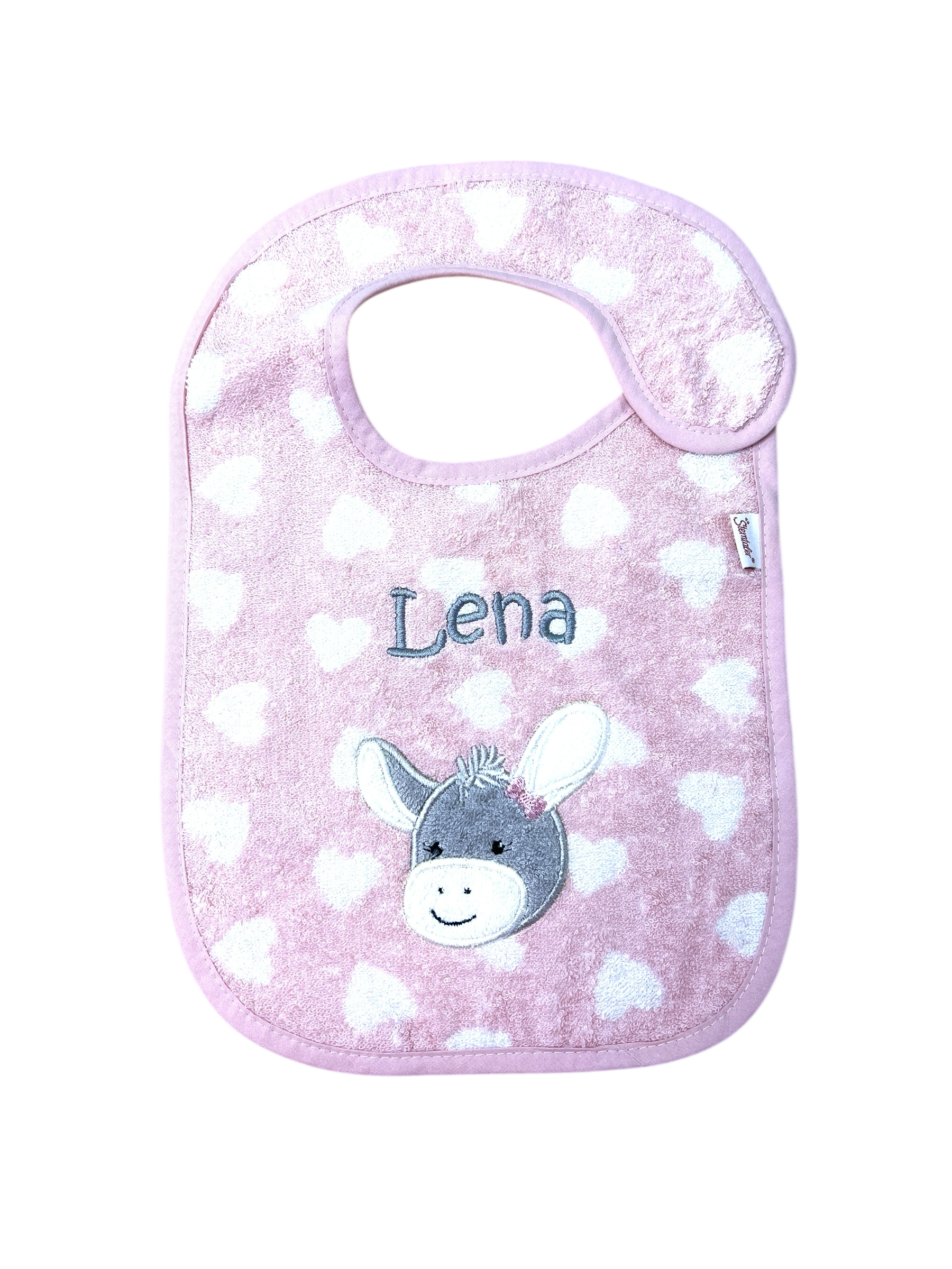 Lätzchen Esel Emmi Girl, mit Klettverschluss, rosa, personalisiert mit Name, Sterntaler