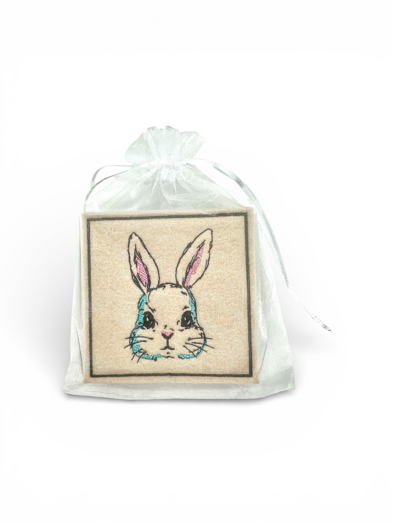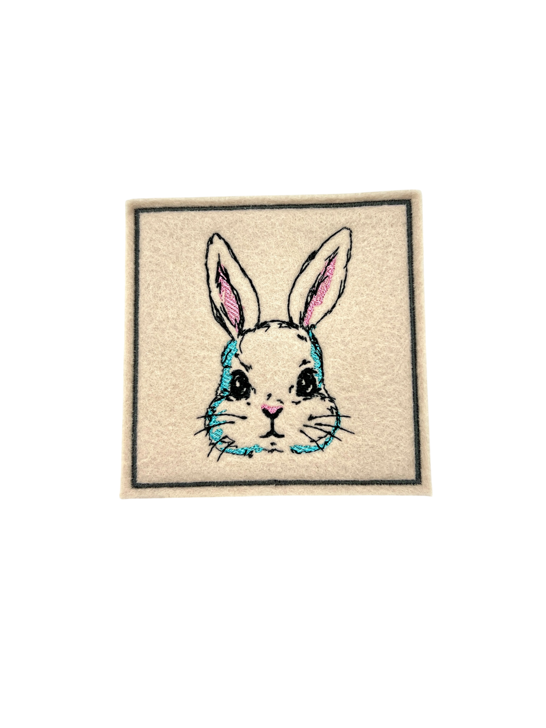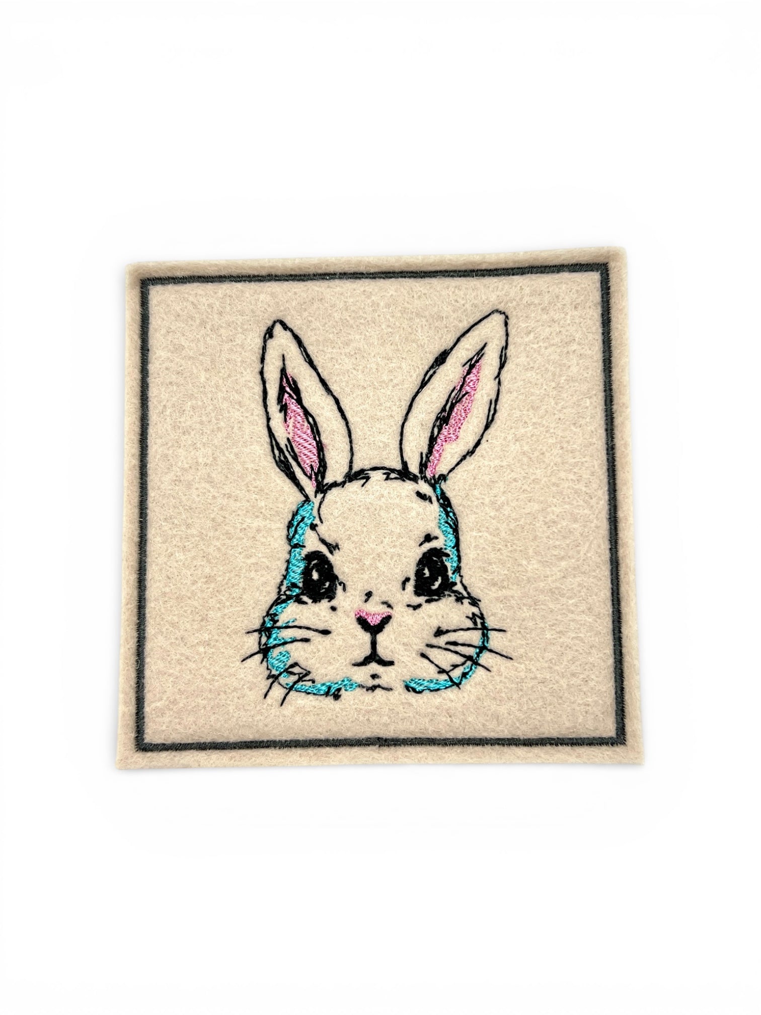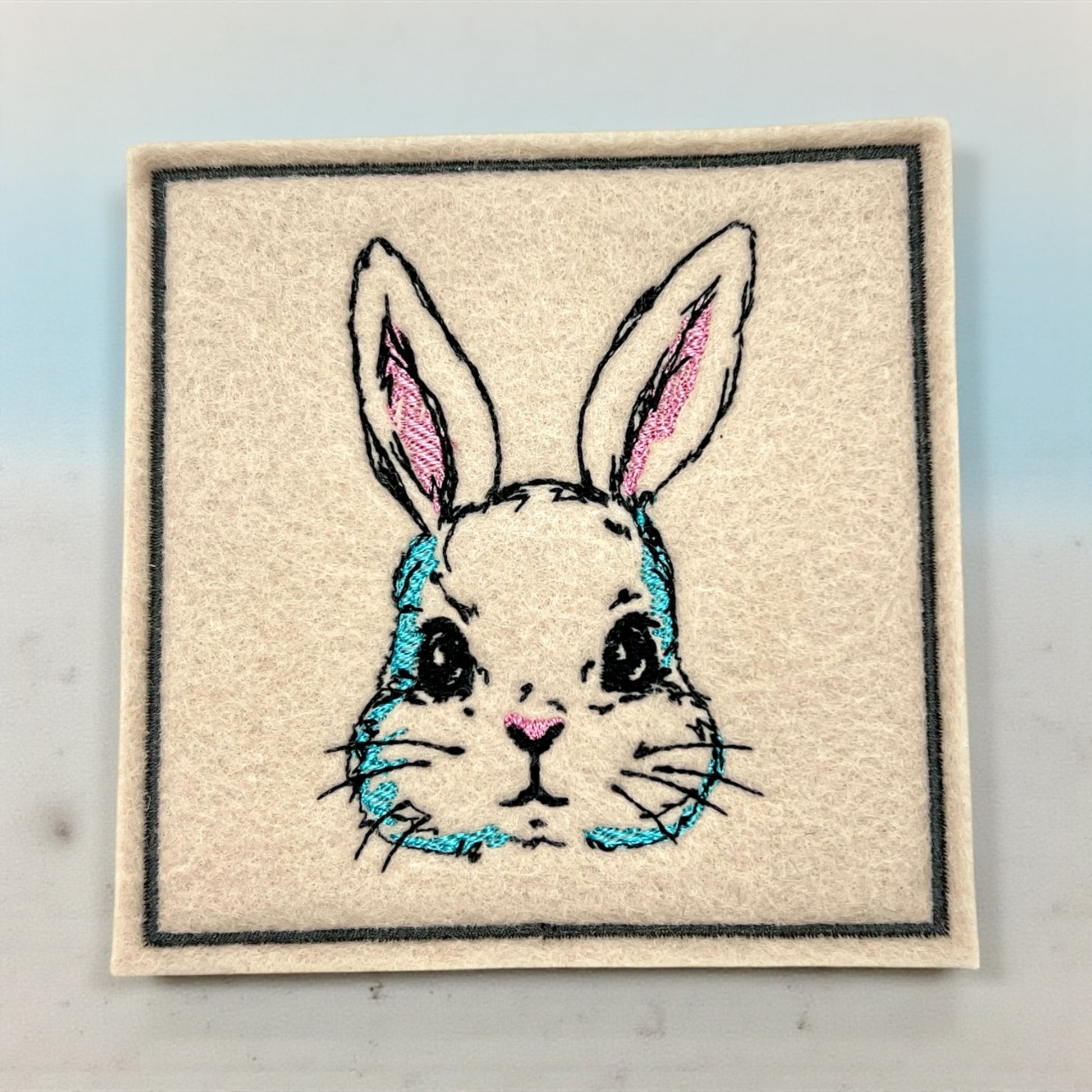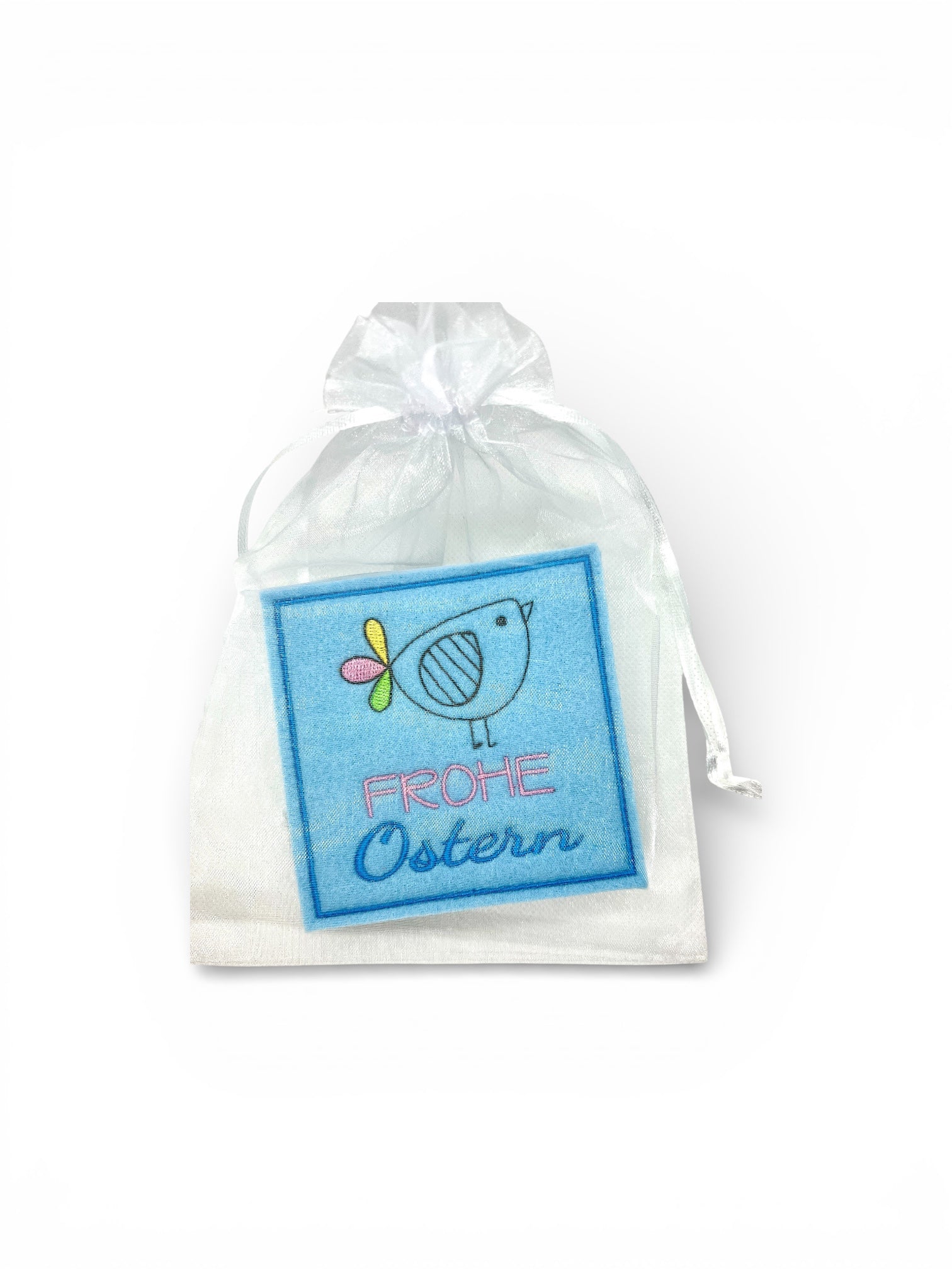4 Glasuntersetzer aus 2 Lagen Filz, bestickt mit Ostermotiv