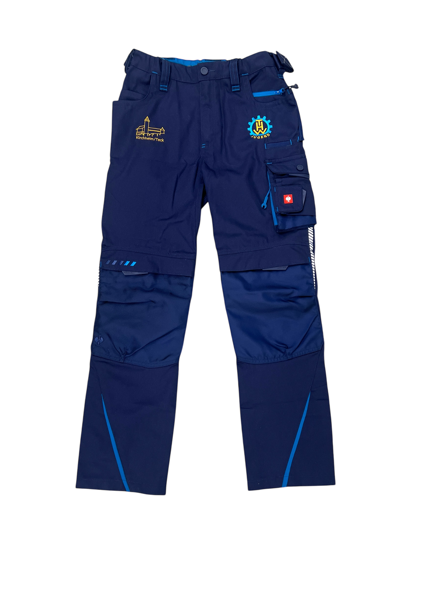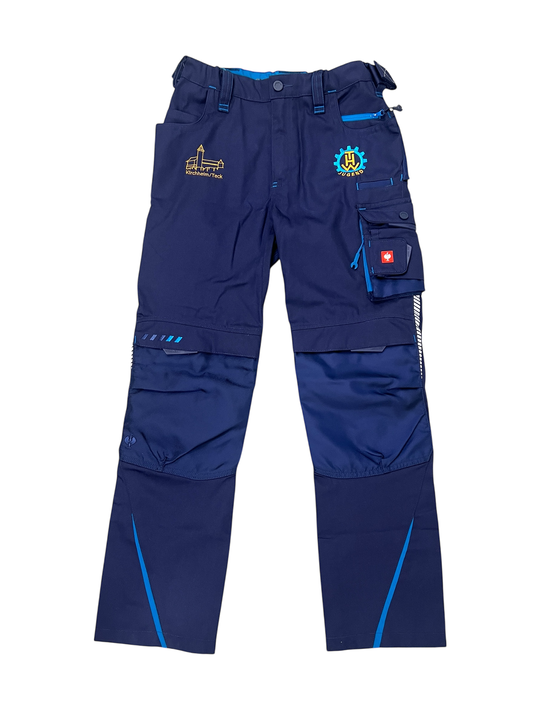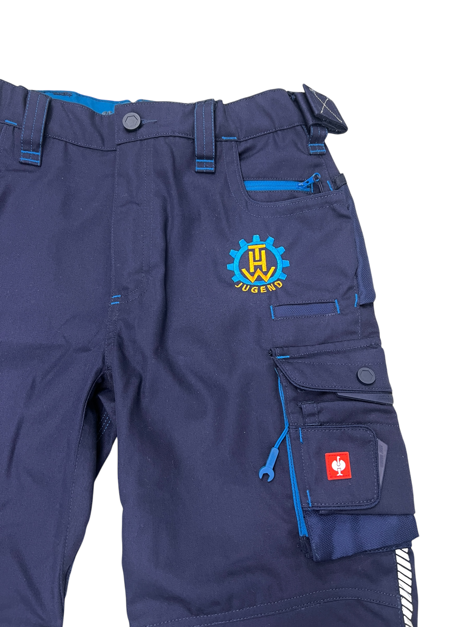 Bundhose e.s. Motion von Engelbert Strauss. Auf der linken Seite der außerhalb der Hosentasche mit THW-Jugend Logo in Jugendfarben bestickt.